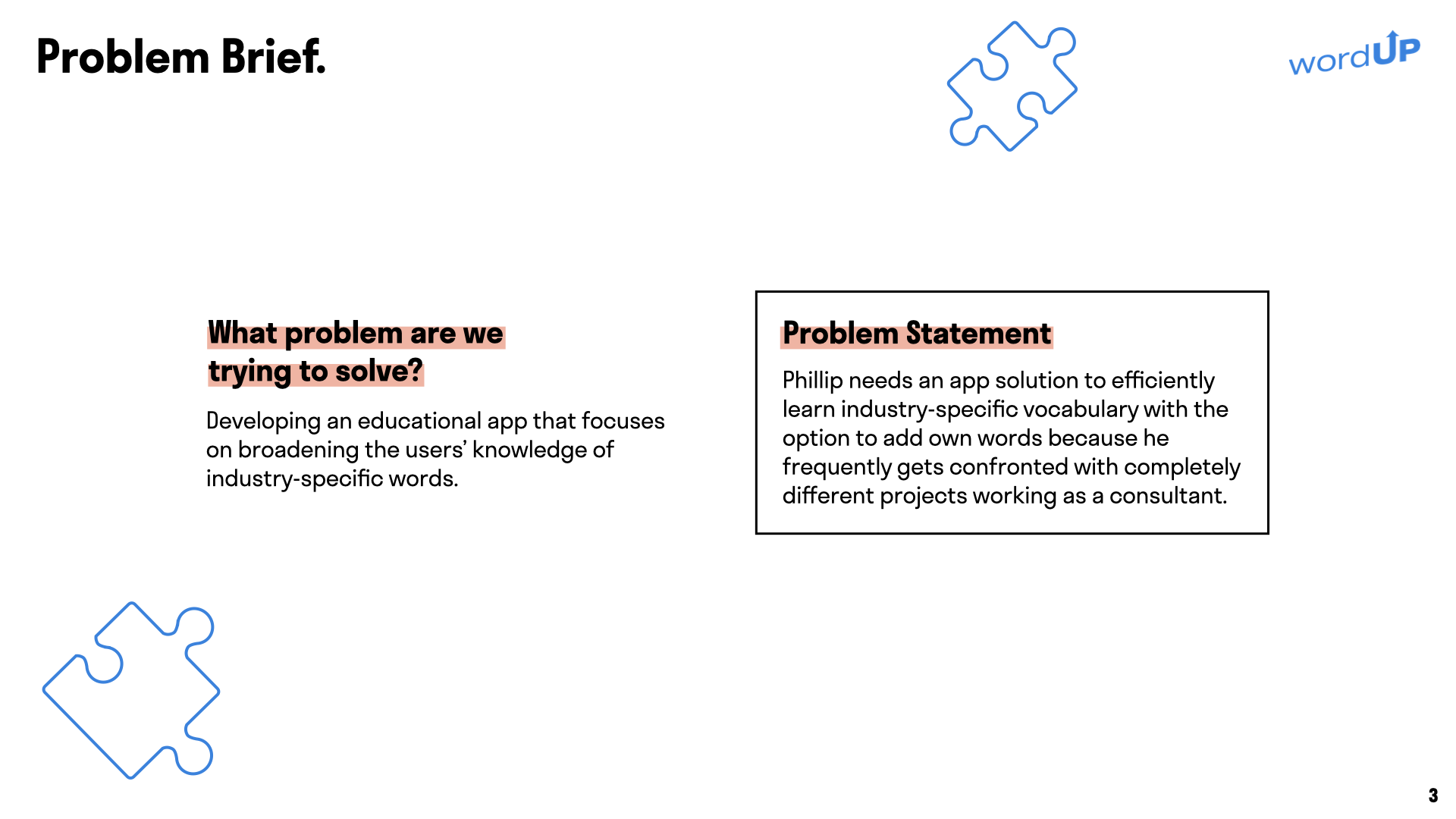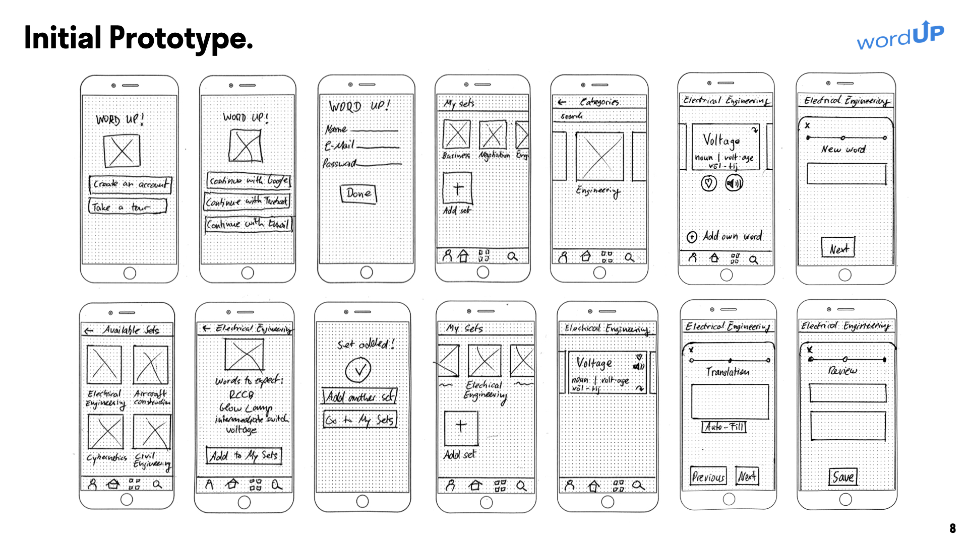 Word Up ist das Ergebnis einer UX Case Study, die das Ziel hatte den fremdsprachlichen Wortschatz von Professionals mittels thematisch dedizierten und spezialisierten Einheiten aufzuwerten, um im Berufsumfeld stets verhandlungssicher zu sein und ein professionelles Auftreten zu gewährleisten.